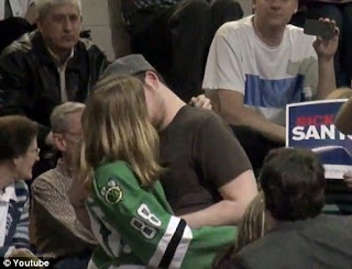 El candidato republicano a las elecciones presidenciales de los Estados Unidos, Rick Santorum, ha expulsó ayer dos hombres de un míting de su campanya porque se besaron durante su discurso. Según el Daily Mail, el republicano, que se opone firmemente al matrimonio gay, había empezado su discurso cuando Timothy Tross y Ben Clifford empezaron a gritar y se besaron en público.